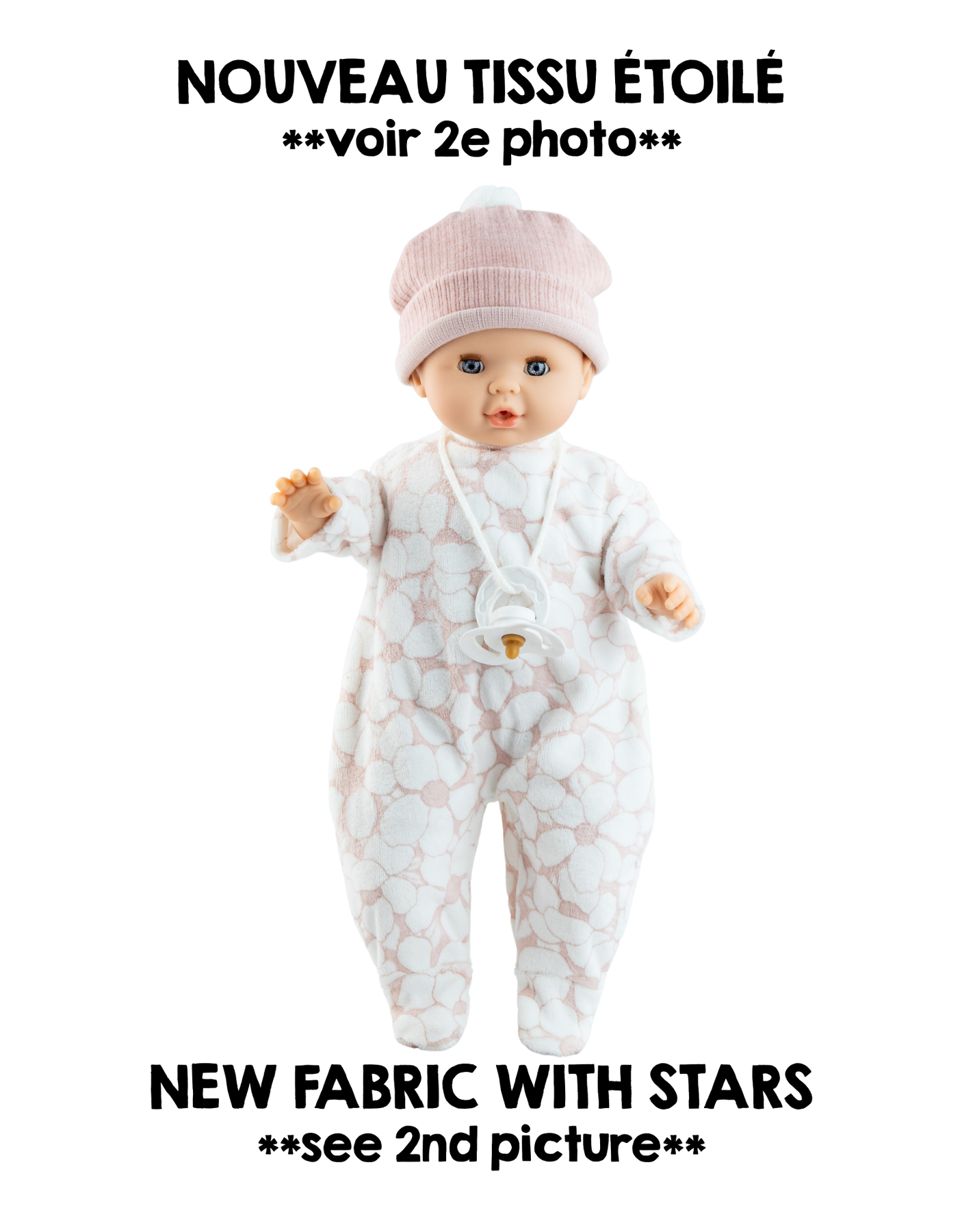 • A pacifier is provided with the doll, it can fit in the mouth.
